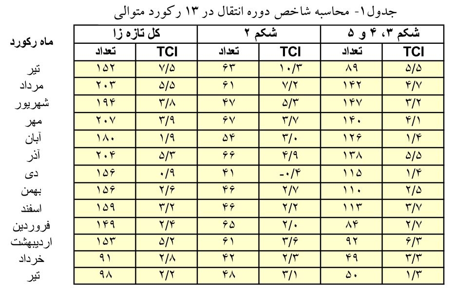 در اين جدول روند 13 ماه گذشته تعداد دام تازه زا و میانگین TCI به صورت کلی و تفکیک شده برای دوره شیردهی دوم و دوره های شیردهی دوم به بعد نشان داده شده است