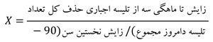 ریسک حذف گوساله ماده تا 3 ماهگی: به احتمال حذف اجباری گوساله‌های ماده در 3 ماهه نخست زندگی اطلاق می شود. در این گزارش از فرمول زیر برای برآورد این عدد در گله استفاده می شود: