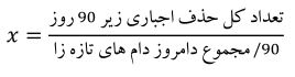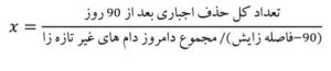 ریسک حذف غیرتازه زا (غیر تولیدمثلی): احتمال حذف اجباری (حذف های سقط و عدم باروری در این گروه قرار نمی گیرند) گاوهای غیر تازه زا (از روز 90 پس از زایش به بعد). در این گزارش از فرمول زیر برای برآورد این عدد در گله استفاده می شود